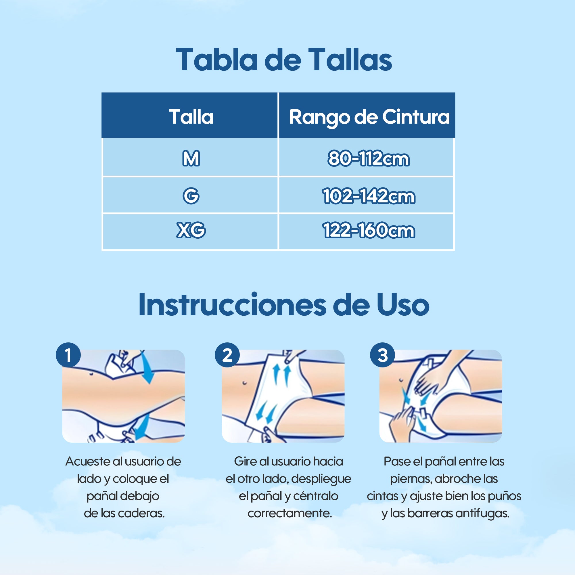 Pañales para Adulto Unisex Premium - Talla G 10 Pzs